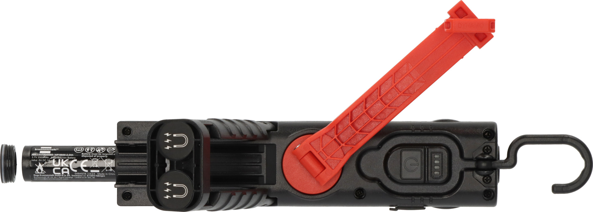 - Laden des tauschbaren Akkus mit USB C und jederzeit durch integrierte Dynamofunktion möglich