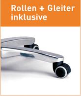 • Sitzhöhen-Einstellung: mit Bodengleitern 450–600 mm, mit Rollen 490–640 mm