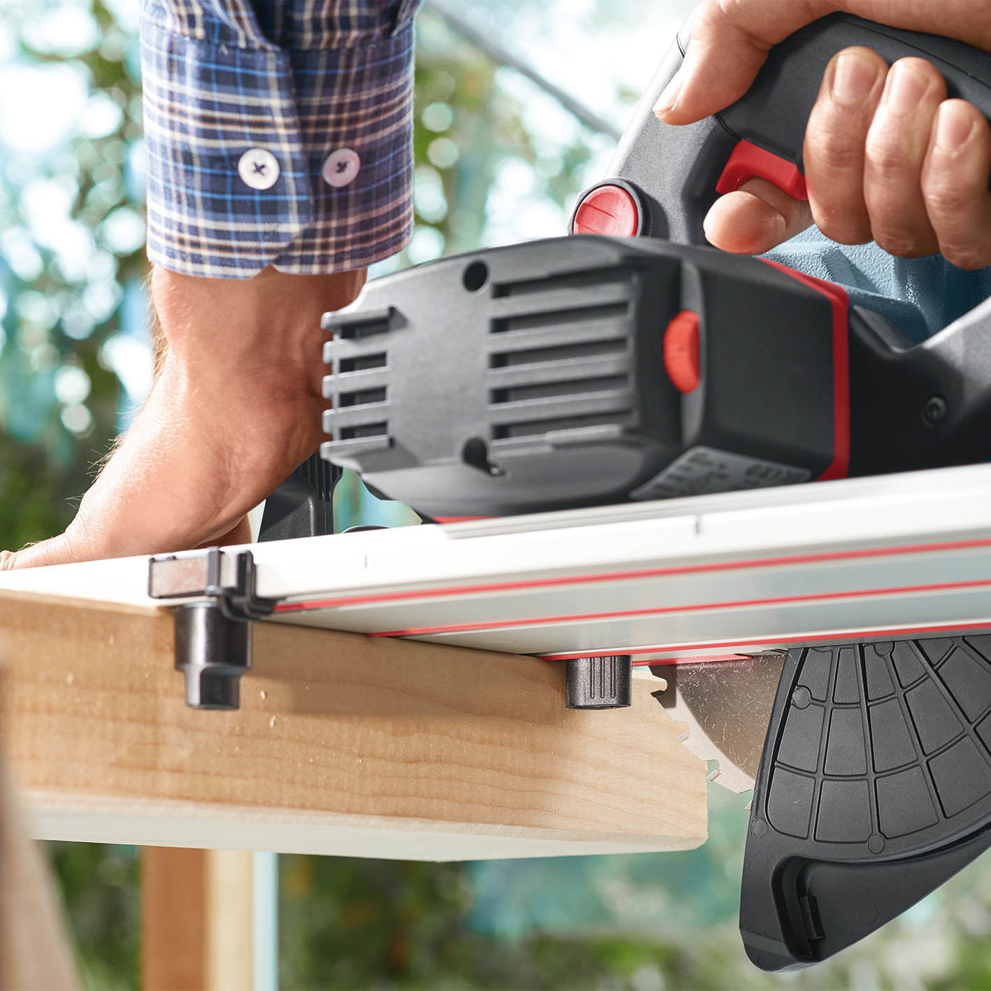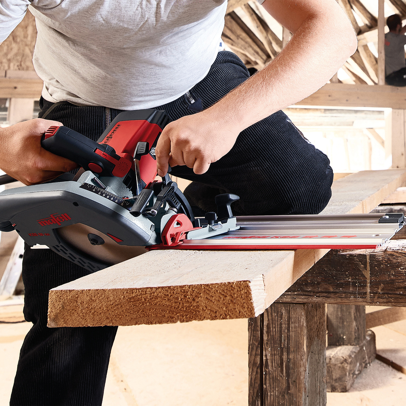 Mit ihrem geringen Gewicht und Schnitttiefen von bis zu 60 mm auf der Schiene setzen die neuen, starken Kappschienen-Sägen von MAFELL deutliche Akzente zum Beispiel beim Innenausbau. Die Säge wird nach dem Schnitt automatisch in die Ausgangsposition zurückgezogen und bietet bei voller Schnitttiefe eine maximale Schnittlänge von 408 mm. Geballte Power und hohe Drehmomente haben einen Namen: CUprex, der Hochleistungsmotor mit leistungsoptimierter Digital-Elektronik und neu entwickelter Steuertechnik. Dabei kann die Drehzahl stufenlos auf unterschiedliche Materialien und Anwendungen eingestellt werden. Es ist kein Abschrauben des Spaltkeils mehr nötig - der FLIPPKEIL bietet Ihnen beim Eintauchen optimalen Benutzerkomfort und Anwendersicherheit.