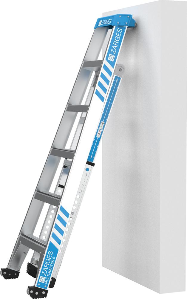 Hinweis: 5 Leitern in einer: (Stehleiter, treppengängige Stehleiter, Anlegeleiter im Off-Set-Modus, Anlegeleiter und ausgefahrene Anlegeleiter).