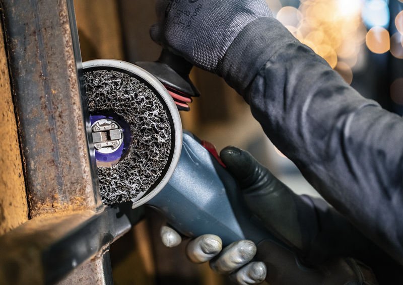 Schnelle Entfernung von Farbe und Rost! Die offene Struktur sorgt für eine geringe Verstopfung Metallarbeiter müssen häufig Farbe und Rost von ihren Werkstücken entfernen. Wir haben die PRO N377 Reinigungsscheibe entwickelt, um das Entfernen von Farbe und Rost einfacher und schneller zu machen. Die PRO N377 Reinigungsscheibe hat eine offene Struktur, damit Rost, Farbstaub und Späne die Scheibe nicht verstopfen. Dadurch kannst du schneller und effektiver arbeiten. Wir haben die Scheibe mit Harz imprägniert, sodass du sie zum Reinigen von Metall, aber auch von anderen Materialien verwenden kannst.