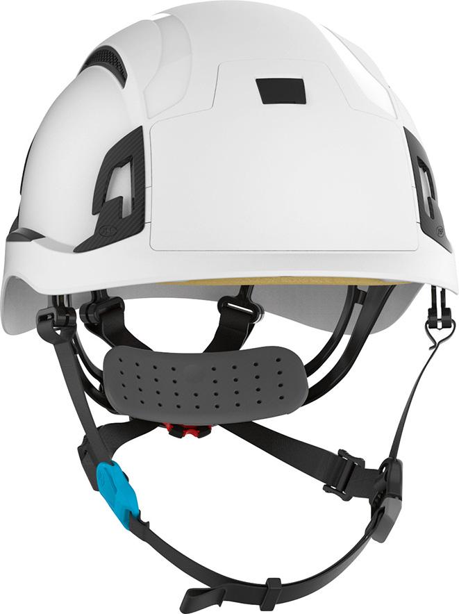 • 4-Punkt Kinnriemen, der so konzipiert ist, dass er auch unter Krafteinwirkung sicher bleibt und die Sicherheit bei einem Sturz maximiert