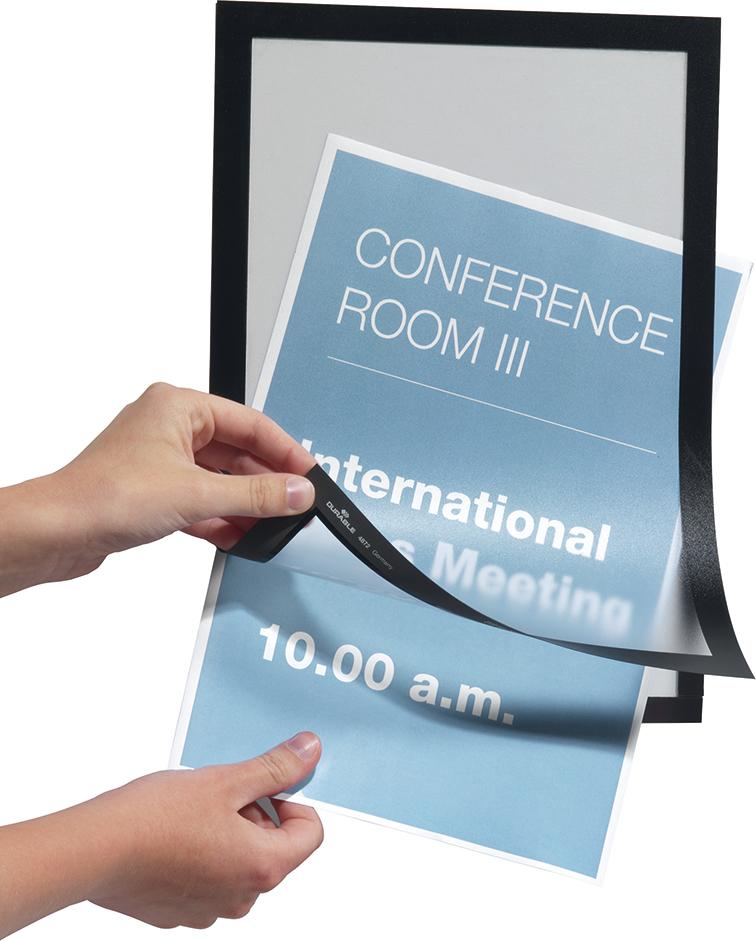 • Mit aufklappbarer magnetischer Vorderseite • Format: DIN A4 • Doppelseitige Lesbarkeit an Glasflächen durch 2 Einlagen • Identische Optik des Rahmens von beiden Seiten • Anwendbar im Hoch- und Querformat • Für Dokumente in A4 wie z. B. Raumkennzeichnungen, Orientierungsinformationen und Angebote Hinweis: Schnelles Einlegen und Auswechseln von Dokumenten durch aufklappbaren Magnetrahmen.