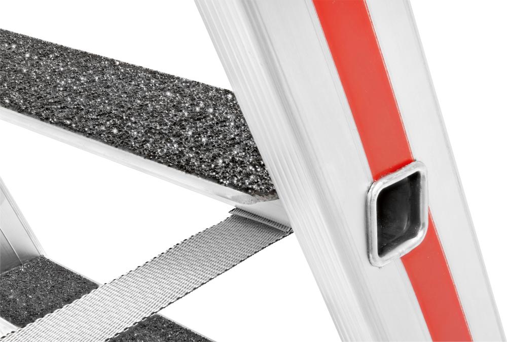 • Ergonomische Stufen: 80 mm tief, Vorderkante mit Holm bündig, mit R13-Beschichtung