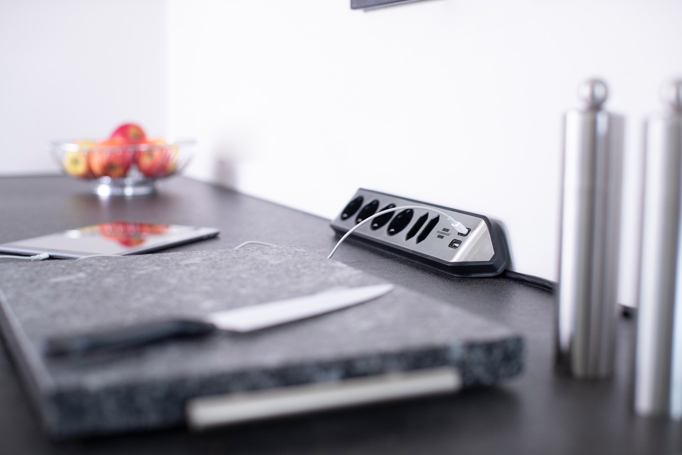 Die kompakte brennenstuhl®estilo Eck-Steckdosenleiste aus hochbruchfestem Kunststoff und hochwertiger Edelstahloberfläche bringt Ihnen Ordnung in Ihr Zuhause. Die universell einsetzbare Steckdosenleiste lässt sich als Küchensteckdosenleiste für Ihre Arbeitsplatte oder als Tischsteckdosenleiste für Ihren Arbeitsplatz durch Spezial-Klebepads leicht anbringen. Die Küchen- oder Tisch-Steckdosenleiste kann sowohl horizontal als auch vertikal angebracht werden. Sie überzeugt außerdem durch folgende Eigenschaften: